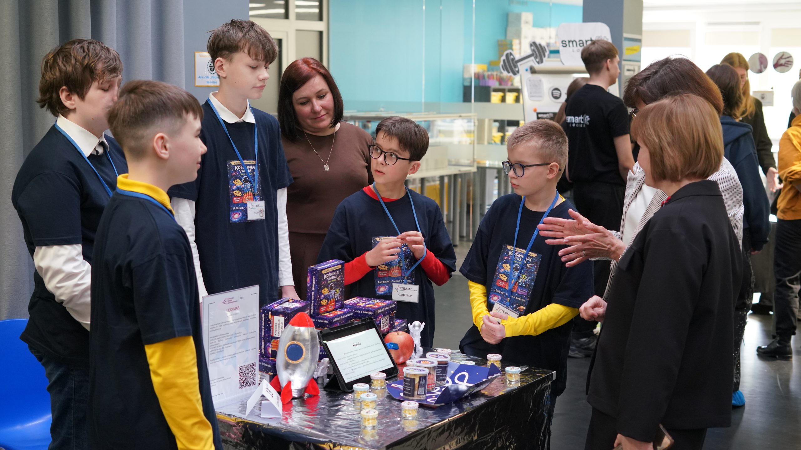 Panevėžio STEAM  ir „RoboLabas“ centrų komandos taip pat pateikė staigmenų. Jungtinė  „RoboLabas“ ir V. Mikalausko menų gimnazijos jaunųjų verslininkių bendrovė „JESMO-DAM“ pristatė minimalistinio dizaino interjero detales iš ekologiško jesmonito kompozito, o „Cosmo chefai“ demonstravo liofilizuotų priešpiečių rinkinius būsimiems astronautams – sveikus užkandžius, ugdančius vaikų mitybos įpročius.